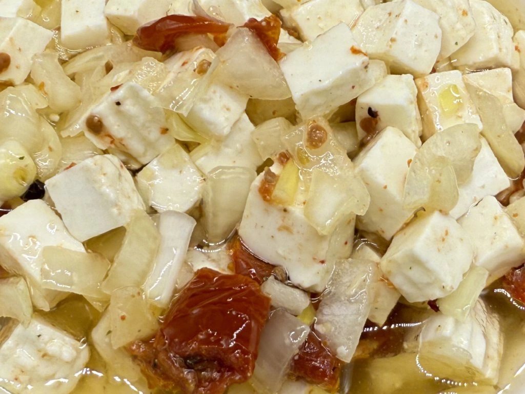 Náš čerstvý sýr je lahodnou delikatesou, která potěší vaše smysly. Tento sýr je nakládaný se sušenými rajčaty, česnekem a cibulí, což vytváří harmonickou kombinaci chutí. Každý kousek sýra se koupe v 100% BIO slunečnicovém oleji, který zajišťuje jeho jemnost a bohatost.Po několika dnech marinování se plně rozvine jedinečná chuť bylinek a rajčat, a vy si tak můžete vychutnat skutečně výjimečný zážitek. Suroviny se dokonale snoubí a jejich potenciál se naplno projeví.Tento sýr je inspirovaný krásným a klidným Oparenským údolím, kde příroda hraje hlavní roli. Je ideální jako předkrm nebo jako součást obložených mís,