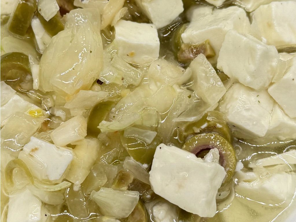 Představujeme vám další nakládaný sýr, který vás okouzlí svou jedinečnou kombinací chutí. Tento sýr je pečlivě připraven s cibulí, česnekem a šťavnatými olivami, které dodávají každému soustu nezaměnitelný charakter.