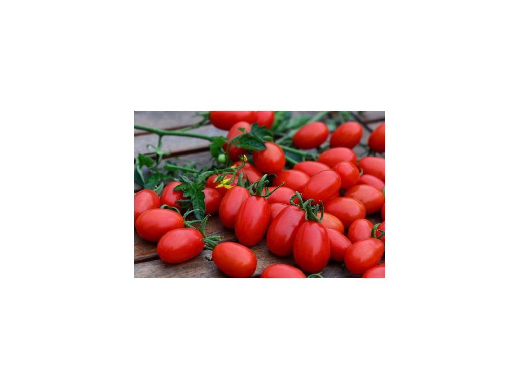 tyčková odrůda s hrozny malých sladkých rajčat protáhlého tvaru